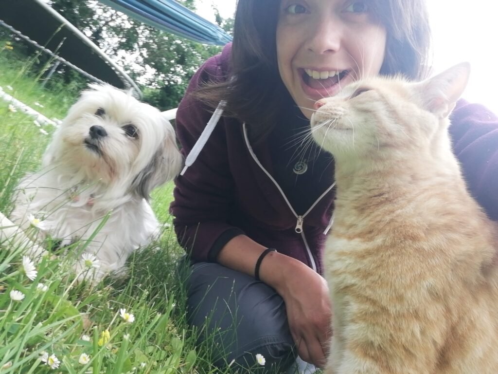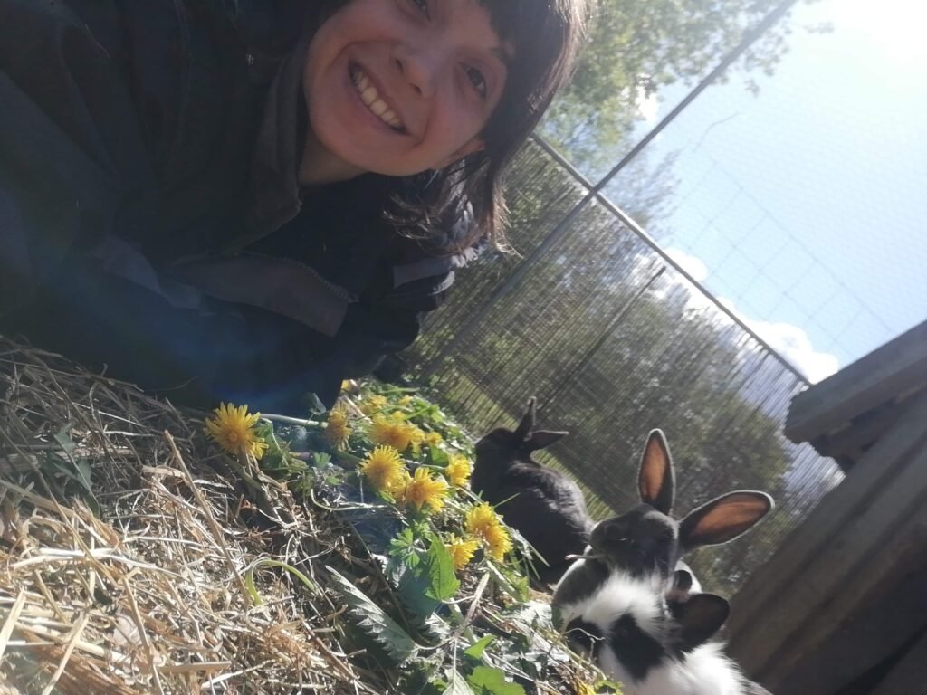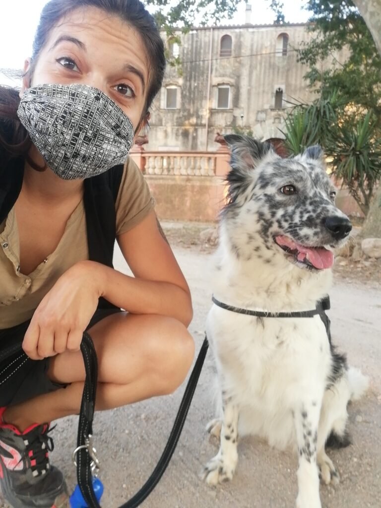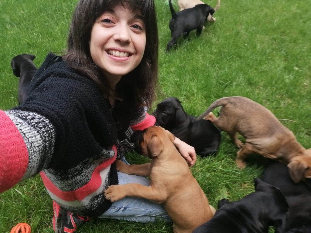 De pequeña siempre había soñado con ser veterinaria, así que la idea de estar rodeada de animales era algo que llevaba dentro de mí desde que tengo uso de razón. Y por supuesto, siempre quise tener un perro en casa, pero en lugar de perretes, mi familia me dejó tener periquitos y un conejo que rescatamos del borde de una carretera. Eso sí, los eduqué como si fueran un perro más, y de manera natural, sin todavía saber nada sobre educación canina, les enseñaba trucos, y construí un vínculo especial con todos ellos. Un año me costó que ese conejo salvaje se acercara a mí y me dejara tocarlo. Horas y horas de sentarme en el suelo, simplemente a estar, hasta que el vínculo se fue construyendo, y acabó siendo como un primer perro para mí. Jugaba con él al escondite, me seguía, le tiraba un peluche e iba tras él… Así que cuando volví de mi viaje, lo tenía claro, y así es cómo decidí formarme en Educación Canina y Modificación de Conducta en CIM Formación Barcelona, avalada por la Asociación Nacional de Adiestradores Caninos Profesionales. Al terminar, empecé a trabajar en la residencia canina donde había hecho las prácticas del curso. Me dieron la oportunidad de empezar de verdad en este mundo y les estaré eternamente agradecida.